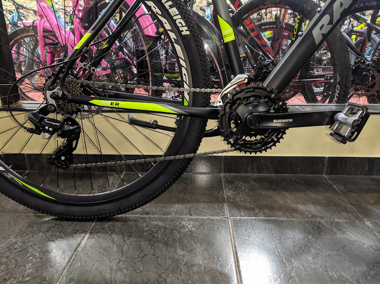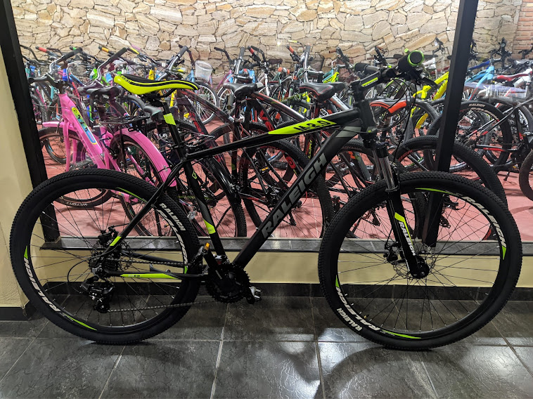 Raleigh Mojave 2.0 SISTEMA DE FRENO: Disco Mecánico SOOM // HORQUILLA Raleigh C/Bloqueo // PIÑON 7 Corona 14-28T // ENGRANAJE Triple 24-34-42X170 Index c/cubre Cadena // MANIJAS DE CAMBIO Shimano Tourney TX// DESVIADOR Shimano Index Tourney TY500 // CUADRO Aluminio // VELOCIDADES 21 // SISTEMA DE CAMBIOS Shimano Tourney TX // MAZA DELANTERA 36 A aluminio a Ruleman con Cierre // MAZA TRASERA Maza Aluminio a Ruleman con Cierre 36ª // CAJA PEDALERA 34.7mm Blindado C/Ruleman // CUBIERTA Raleigh 29X2.20 MTB // LLANTA Doble Pared Raleigh 29X1.75 36ª // ASIENTO MTB 265x150 Raleigh Anti Prostático //