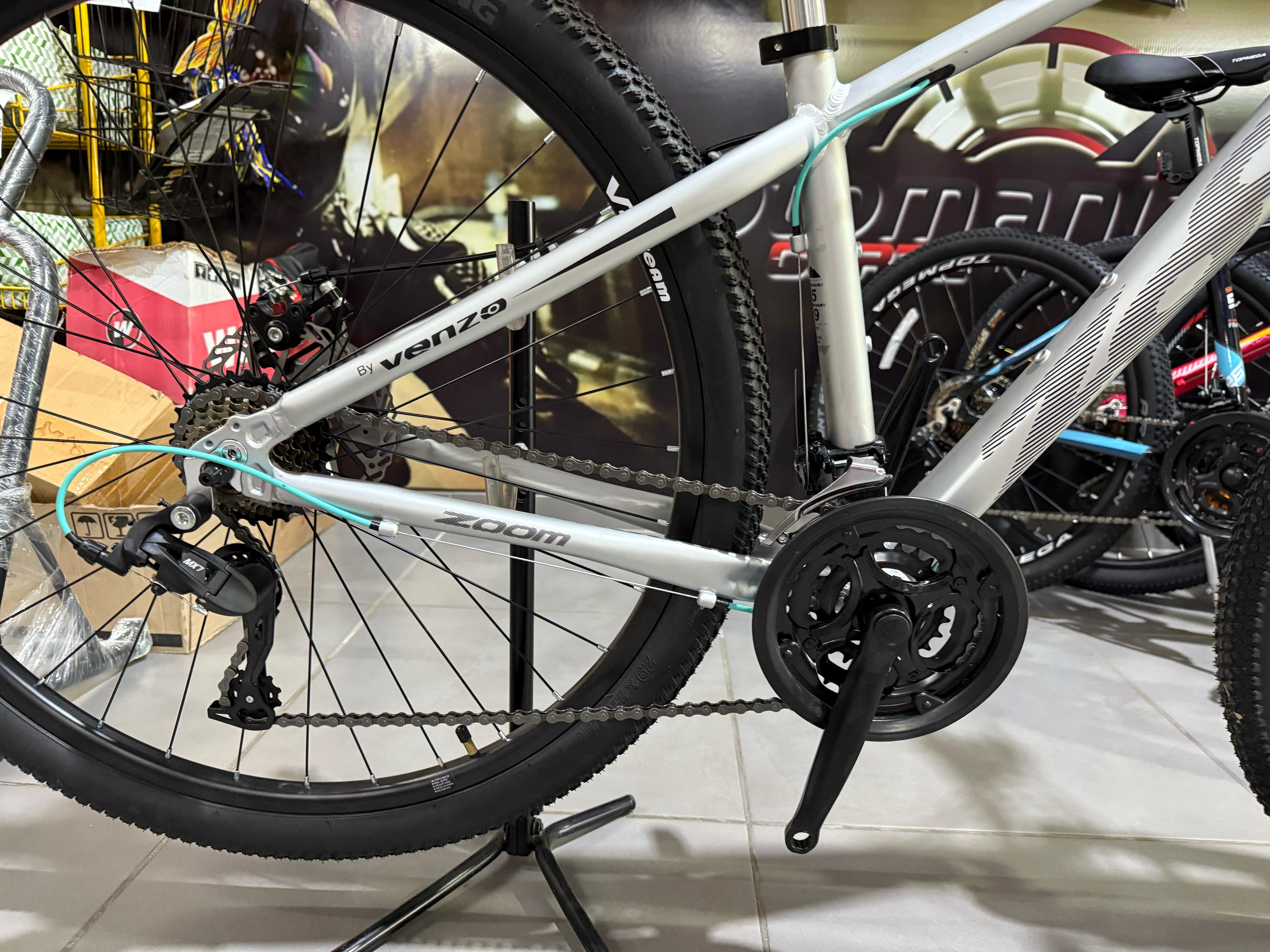 - MANIJAS DE CAMBIO SENSAH MX7 - FRENO A DISCO MECANICO - HORQUILLA VENZO CON BLOQUEO EN BOTELLA - LLANTAS DE ALUMINIO DOBLE PARED VENZO - CUBIERTAS CHAOYANG 29 X 2.0